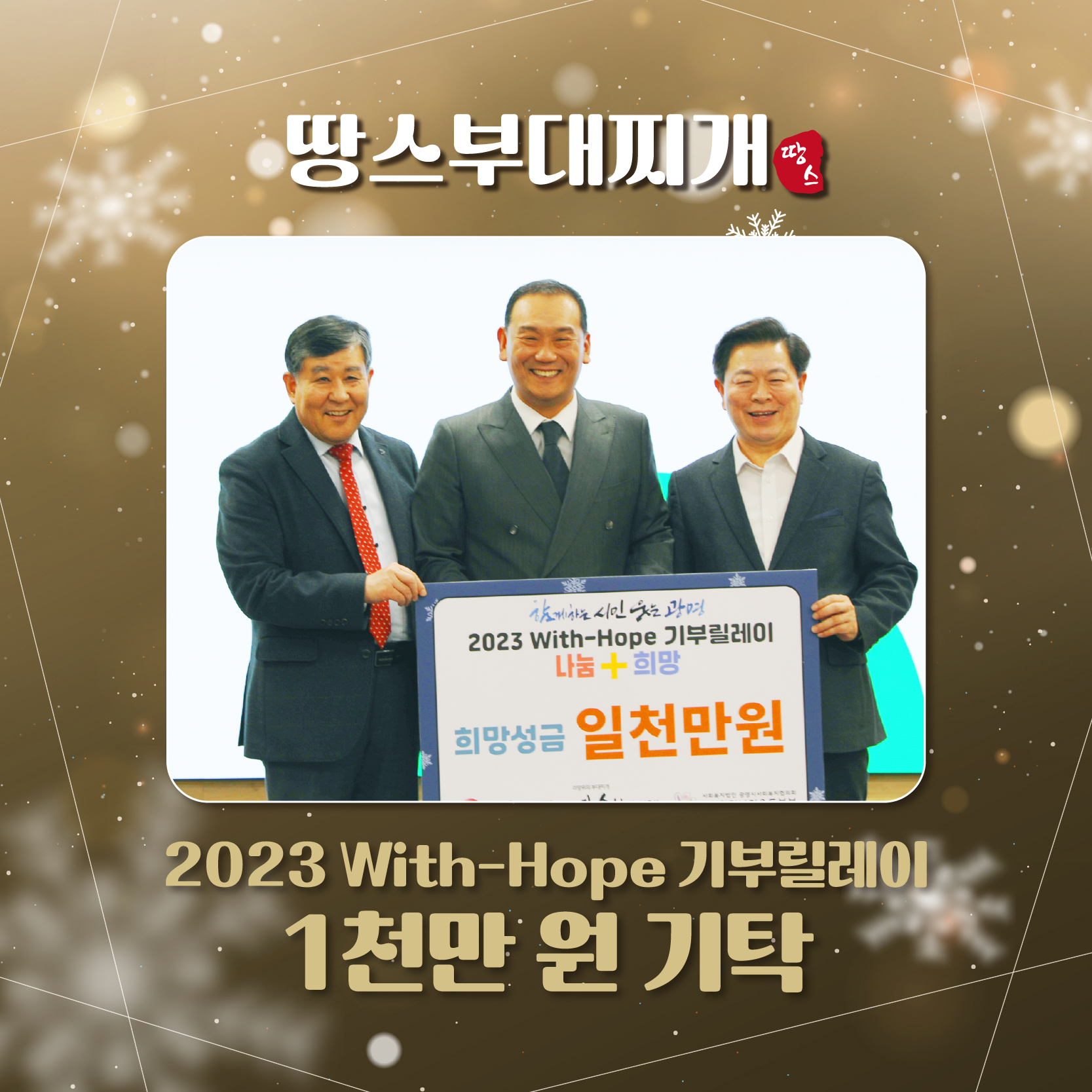 ♥올 연말 따뜻한 소식♥ 땅스부대찌개가 음성군 연말 이웃돕기 성금 1천만 원을 전했습니다. 유독 추운 올 겨울, 어려운 이웃들을 위해 부대찌개 국물 만큼 따뜻한 땅스의 마음을 전했습니다. 앞으로도 영원히 식지 않을 뜨끈한 땅스의 행보를 기대해주세요.