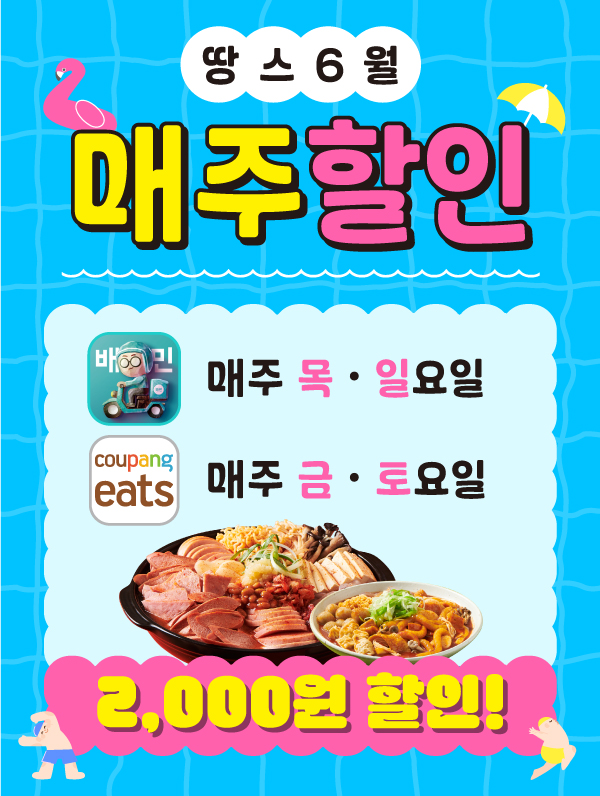 땅스부대찌개·땅스떡볶이 배민·쿠팡이츠 6월 할인 이벤트