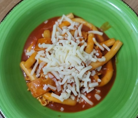 저는 이번에는 새로 출시된 김치피자떡볶이를 먹어봤어요. 정말 핵존맛!! 매운 김치 육수와 상큼한 토마토소스도 들어있답니다. 김치와 토마토의 조화가 어떨지 너무 궁금했어요.그리고 화룡점정 피자치즈에요.ㅎㅎ 강불에서 팔팔 끓은 후 약불로 줄인후 라면사리를 넣어요. 남편이 배부르다고하여 혼자 먹어야 해서 사리는 절반만.. 근데 다 끓이고 나서 뺏어먹는거 실화냐??!??!!! 혼나아주??? 떡이 얇은 누들떡이어서 그런지 양념이 쏙쏙 잘 배어 있어요. 소스 맛은 정말 혁명적!!! 매콤하면서 새콤한 토마토 맛이 어찌나 잘 어울리던지요~ 매운 피자맛이 나면서도 간간히 씹히는 김치가 감칠맛을 확 올려줘요.