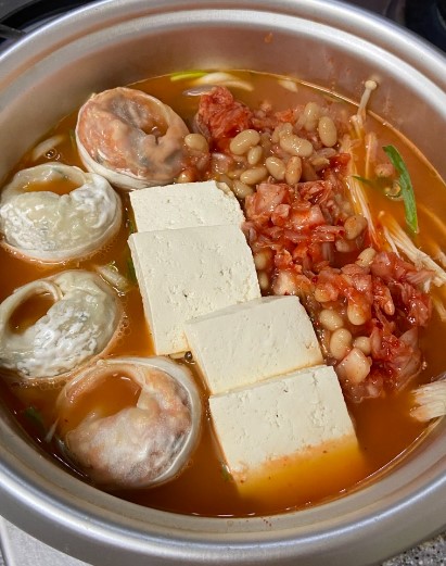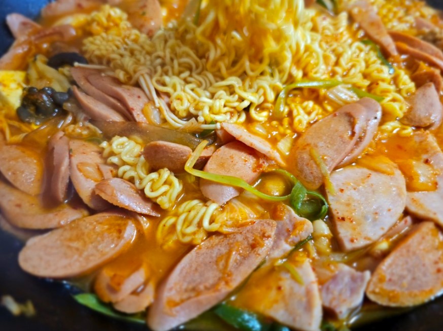 정말 다양한 부대찌개 메뉴들 기본 부대찌개 뿐만 아니라 치즈/만두/모둠햄/토마토 등등등 다양한 재료들을 메인으로 한 부대찌개 메뉴들이 있었어요 거기다 내가 좋아하는 사리추가도 할 수 있다는 점 저는 다양한 재료들이 한가득 들어있는 모둠부대찌개 15,900원 주문해봤어요 모둠으로 들어있기 때문에 따로 사리는 추가하지 않았어요 비쥬얼 미쳤따리... 꼬들꼬들 면이 살아있을때 딱 먹어줘야죠? 부대찌개 이가격에 이양에 이맛에 이거 맞는건가요??