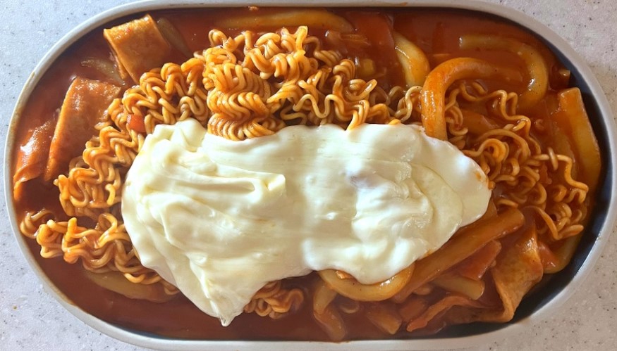 부대찌개가 3인분에 9,900원으로 가성비 맛집으로 유명한 땅스부대찌개! 신메뉴로 김치피자떡볶이가 출시됐다고해서 빠르게 다녀왔어요~ 신메뉴 포장하러 왔는데 급 부대찌개가 먹고싶었지만 꾹 참고 김치피자떡볶이 주문!! 주문하면 미리 준비해두신 재료들을 메뉴 조합에 맞게 하나씩 꺼내주시기 때문에 빠르게 포장할 수 있어요! 떡과 소스 치즈 등등 냄새부터 너무 맛있는 냄새가 나더라고요! 약간은 달큰한 떡볶이 느낌? 치즈도 쭉쭉 늘어나서 너무 맛있어보이죠?