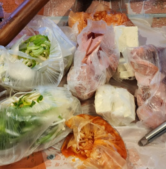 캠핑 가는 조식으로 부대찌개를 준비하기 위해여 노브랜드 옥정점에 가려고 했다가 건물이 헷갈려서 옆 건물에 주차를 했다. 이런 낭패가 싶을 때 부대찌개 테이크아웃 전문점이 이 건물에 있구나.~~ 더운데 차 빼서 다시 오기도 귀찮아서 처음으로 땅스부대찌개를 구매해 봤다. 노브랜드에도 자체적으로 전골형식으로 판매하는 부대찌개 밀키트가 있다. 가격도 만원 안팎이고 맛도 괜찮다. 땅스부대찌개는 전문점이라고 하니 더 맛있겠다 싶었다. 총 9인분을 포장해 왔다. 사리면까지 포함하여 육수랑 각종 재료들이 개별 포장이 되어 있다. 찌개 육수는 매운맛과 보통맛이 있어서 매운맛 1개와 보통맛 2개로 했다. 섞어서 끓이면 좋을 것 같았다.각종 재료들의 구성이 꽤 괜찮구나 싶다. 몰랐다. 주차를 잘못하여 구매해온 양주 옥정 땅스부대찌개 모두들에게 괜찮았나 보다.