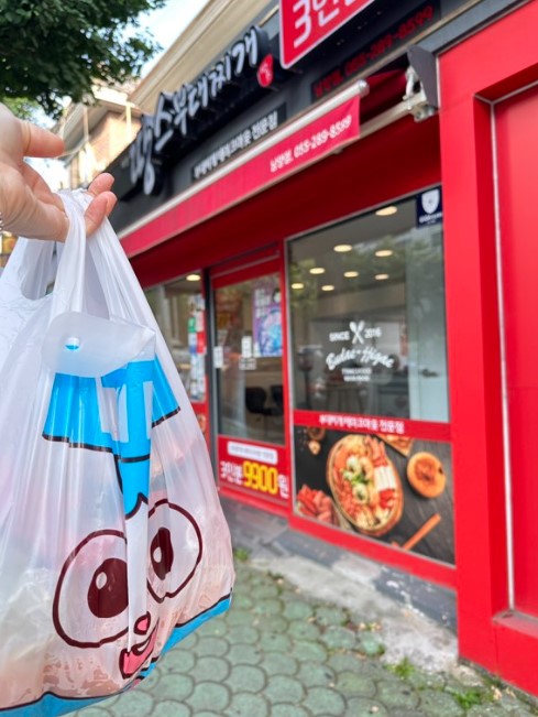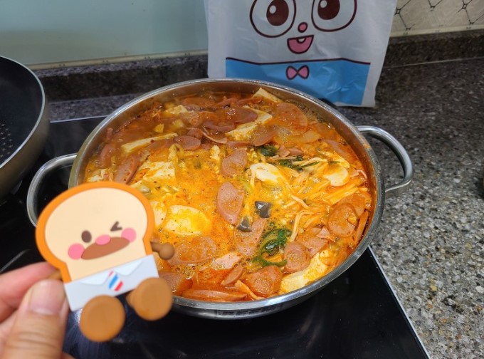 요즘 외식으로 부대찌개 먹으러 가려면 1인 당 최소 1만원씩은 드는 고물가 시대인데 3인분 분량의 부대찌개를 9,900원에 파는 부대찌개 테이크아웃 전문점이 있어서 저도 포장해와서 집에서 해먹어보았는데요 간편하기도 하고 가성비도 정말 좋아서 집에 손님들 오시면 내기에도 좋겠더라고요 제가 다녀온 곳은 땅스부대찌개 대구봉덕점이고 마침 브레드이발소 굿즈도 있어서 귀여운 칫솔걸이도 하나 마련했답니다 정말 재료도 푸짐하고 맛도 좋아서 남편이랑 둘 다 먹으면서 이 가격에 이정도 퀄리티라니 완전 혜자스럽다고 칭찬했어요 밥 하기 싫을 때, 캠핑 갈 때 요럴때 가끔 포장해다가 먹으면 좋겠어용!