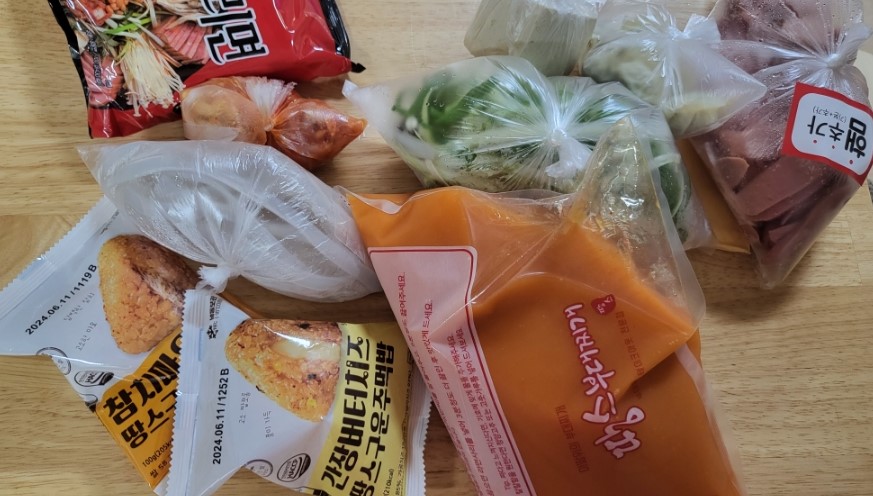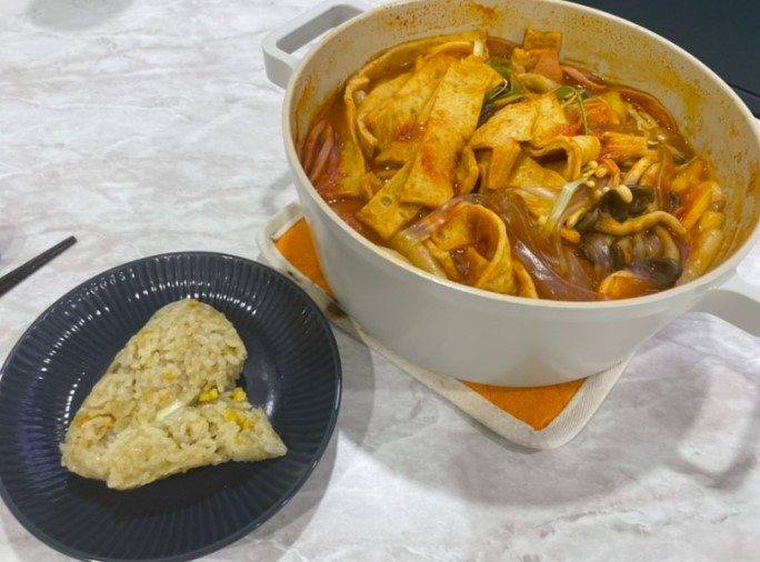 모둠 부대찌개 3인분 20,900원 참치마요주먹밥 /간장버터치즈주먹밥 각각 1,500원 금방 도착했습니다 비조리라 그런지 일회용 그릇들이 없어서 그건 좋네요 옆에는 같이 주문한 주먹밥이에요 전자렌지에 돌려주면 됩니다 양도 푸짐하고 얼큰하니 맛있네요^^