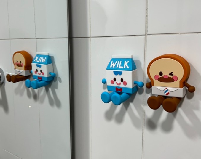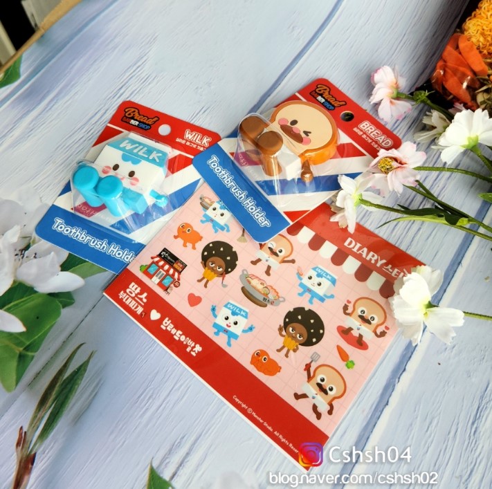 브레드이발소는 애니메이션으로 뮤지컬도 열릴 만큼 인기가 많더라고요! 저는 이번에 처음 보는 캐릭터였는데도 귀여워서 마음을 뺏겨버렸어요ㅎㅎ 식빵 모양의 브레드피트, 우유인 윌크화이트 등 눈이 동글동글하고 말을 걸 것 같은 느낌의 캐릭터라 귀여워요~ 이번에 땅스부대찌개와 콜라보레이션을 할 때 방문하기 잘했다는 생각이 들었어요! 포장을 열어보니 부대찌개 양이 많고 재료도 신선해서 괜찮았고 브레드이발소 칫솔걸이와 스티커가 앙증맞아서 기분이 좋아지더라고요~ 브레드이발소 스티커는 다이어리에 붙이면 이쁠 거 같고, 칫솔가득햄부대찌개라 그런지 햄이 듬뿍 포장되어 있었는데요! 반달모양의 오햄, 세모난 햄, 길쭉한 후랑크햄이 들어 있는데 모양이 제각각이라 골라 먹는 재미도 있고 식감도 다 달라서 좋았어요~걸이는 벽에 나란히 붙여 놓으면 귀여울 거 같은 이미지가 머릿속에 그려져 빨리 칫솔을 걸어보고 싶었어요!