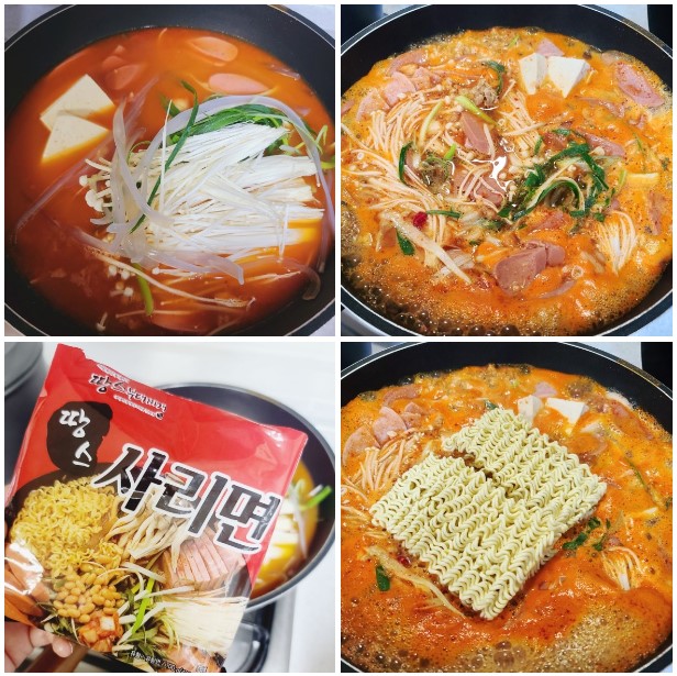 밥하기 싫을 때 술 한잔할 때 캠핑 갈 때 손님 올 때 (입맛이 없어도 부대라면은 땡길 때) 퇴근길에 종종 방문해서 포장 해오는 부대찌개 밀키트 전문점 땅스 부대찌개 오리지널 기본 9900원(라면사리 포함)이라서 부담없이 끓여 먹을수 있어요 꼬들한 라면 식감을 위해서 젓가락으로 살살 풀어줍니다 냉면그릇에 한그릇 넉넉히 떠서 라면, 당면부터 건져 먹었어요, 불으면 큰일이니깐유 (>̯-̮<̯) 김치와 햄 육수 조합은 맛이 없을수가 없네요 경쟁하듯이 먹으니 금방 부대찌개가 사라졌어요 ㅋㅋㅋ