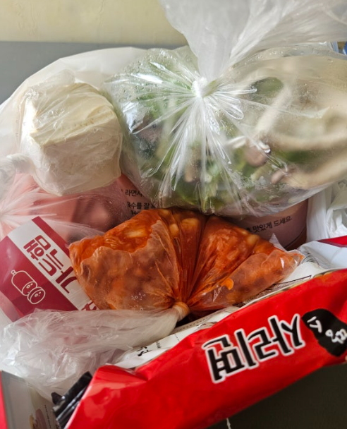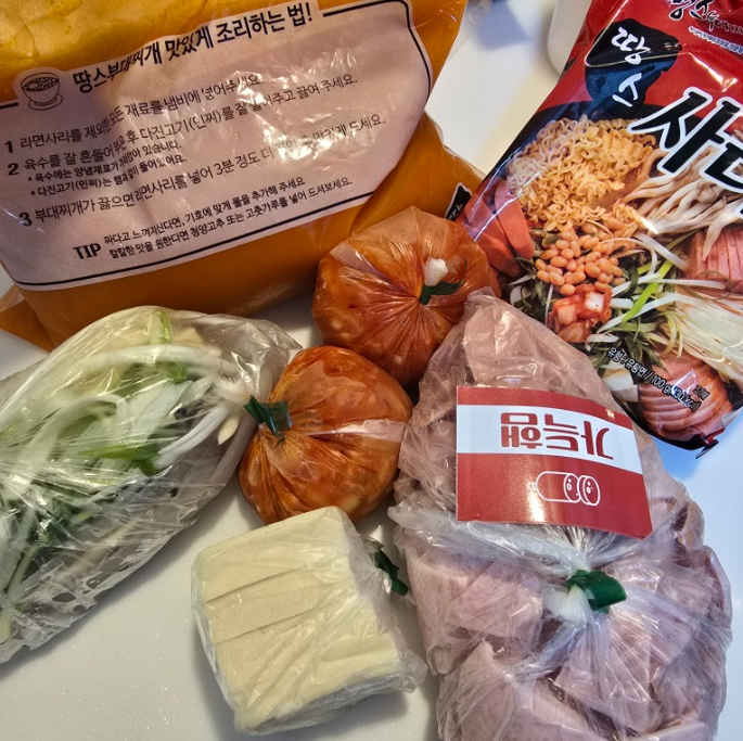 땅스부대찌개에서 짱구타이머 이벤트가 있다고 하여 주말에 도전해 보았다. 매장이 멀어서 배달로 주문하였고 해당 땅스부대ㅈ찌개를 시켜야 타이머를 받을 수 있었다.(랜덤) 쿠팡이츠로 쿠폰할인(-3,000원)까지 야무지개 받아 27,500원에 주문하였다. (원래 주문 금액은 30,500원이였다!) 3인분이라.... 도움이 필요했다.. 땅스부대찌개는 밀키트 식으로 비조리로 온다 아래처럼 재료들이...