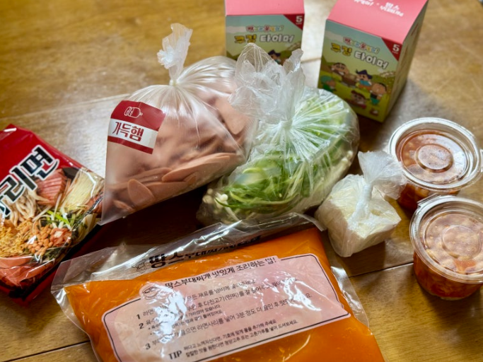 부대찌개를 좋아하지만 매번 똑같은 맛은 지겹다고요? 지난 주말 땅스부대찌개에서 가득햄 부대찌개 세트를 포장하며 요즘 SNS에서 핫한 짱구 타이머 콜라보 굿즈 까지 영접했습니다 포장 구성은 밀키트처럼 재료가 각각 분리 포장되어 있어 냄비 하나만 있으면 누구나 간편하게 조리할 수 있습니다 가득햄세트라는 이름에 걸맞게 햄이 정말 넉넉하게 들어 있었어요