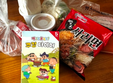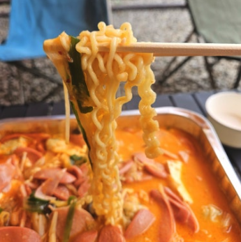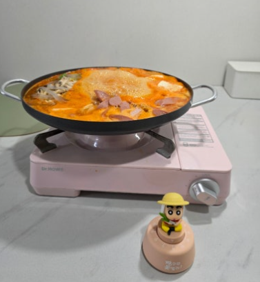 저희는 캠핑에서 먹을거라 일회용 냄비도 구매했어요 가게 둘러보다 발견한 짱구타이머! 요거 너무 귀여워서 하나 구매했어요~ 랜덤으로나와요 저희는 모둠부대찌개 시켰구요 냄비랑, 식혜, 짱구타이머 요렇게 구매해서 34600원 나왔습니당 크읏! 넘나푸짐해요 재료들이 익을 때 까지 보글보글~~ 저는 냄비 바닥에 눌러 붙지 않게 저어 주었어요 마지막으로 라면사리까지 넣어주면완성!???? 밥이랑 같이먹으면 존맛이에요????????후식은 식혜