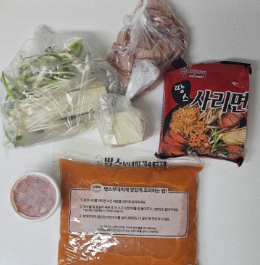 어멋, 굉장히 푸짐하게 들어있어요 우선 가장 눈에띄는게 바로육수! 보통 빨간국물이었는데 검은사막 이름처럼 검은 육수가 들어있고요 거기에 찜닭을 만들 수 있는 닭도 들어있답니다 찜닭느낌 그대로, 향기도 맛잇는 찜닭냄새가 나서 빨리 먹고싶더라구요???? 전 국물도 함께 먹으려고 많이 졸이지는 않았고 이 선택이 아주 만족스러워요 국물이 정말 맛있거든요ㅠㅠ
