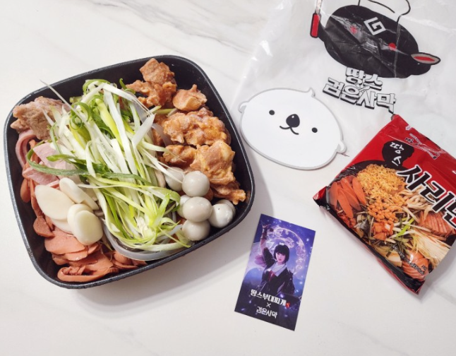 땅스부대찌개 검은사막 콜라보 검은찜닭부대찌개 3인분 나왔닭