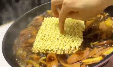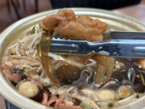 간장베이스의 달달 짭짤한 육수를 먼저 부어주었습니다. 순살치킨도 모두 넣어준 뒤에 달달한 간정 국물이 안쪽으로 쏙 배도록 국물에 푹 담아서 적셔줍니다. 그 상태로 10분간 센 불로 보글보글 끓여주면 됩니다. 밀키트 만들기 너무 쉽죠? 보글보글 보글보글 끓일수록 맛있는 냄새가 올라오고 있어요 드디어 맛있는 검은찜닭부대찌개 완성!! 간장베이스의 소스가 까만색으로 잘 배어나왔어요 다양한 햄과 만두에 당면과 라면까지 정말 푸짐한데 순살치킨까지 있어요
