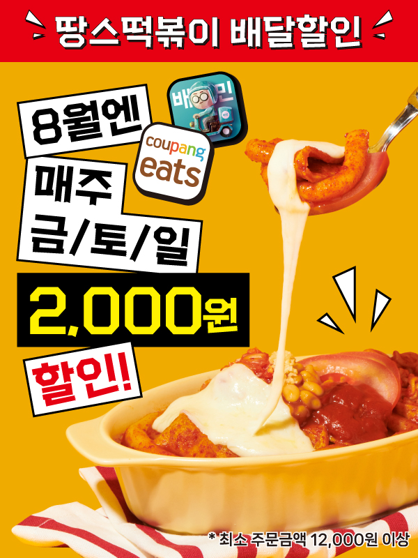 땅스즉석떡볶이, 배달의민족‧쿠팡이츠와 2000원 할인프로모션 진행