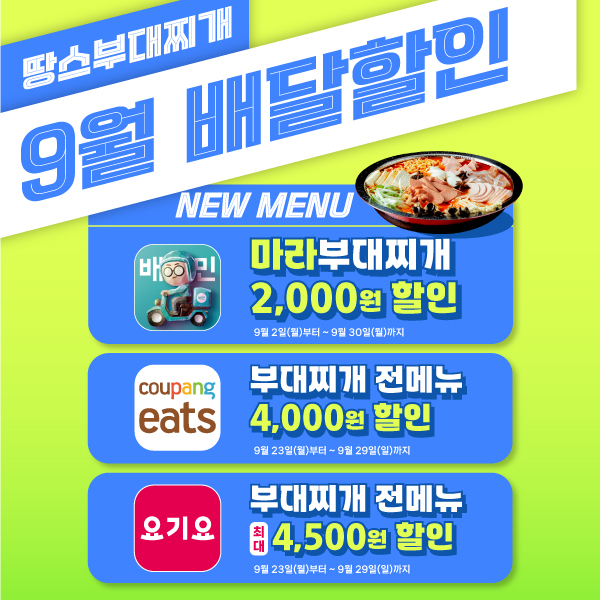 땅스 9월 신메뉴 출시 배달앱 할인!