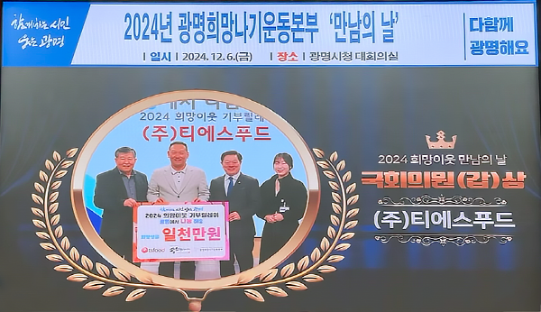 땅스부대찌개 '광명희망나기운동본부 희망이웃 만남의날' 표창장 받아