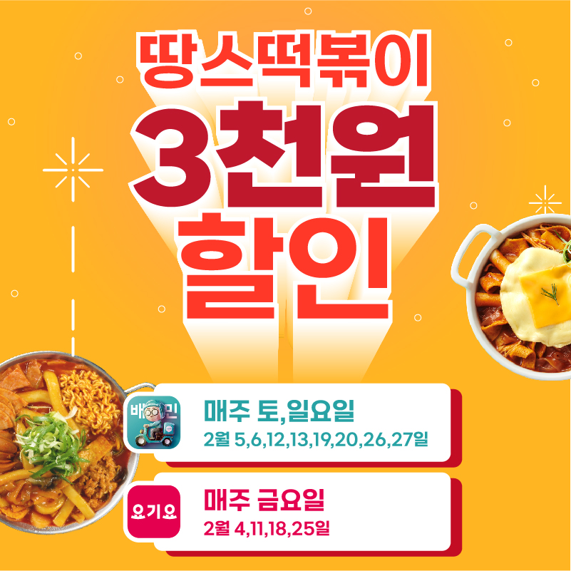 땅스떡볶이, 2월 배달의민족-요기요 할인 진행